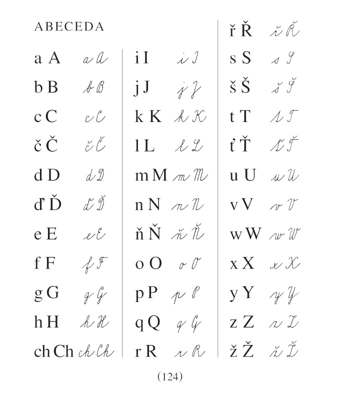 Tabule psacího i tiskacího písma přináší písmena v pořadí, v jakém jsou uvedena v tradiční řadě učebnic…